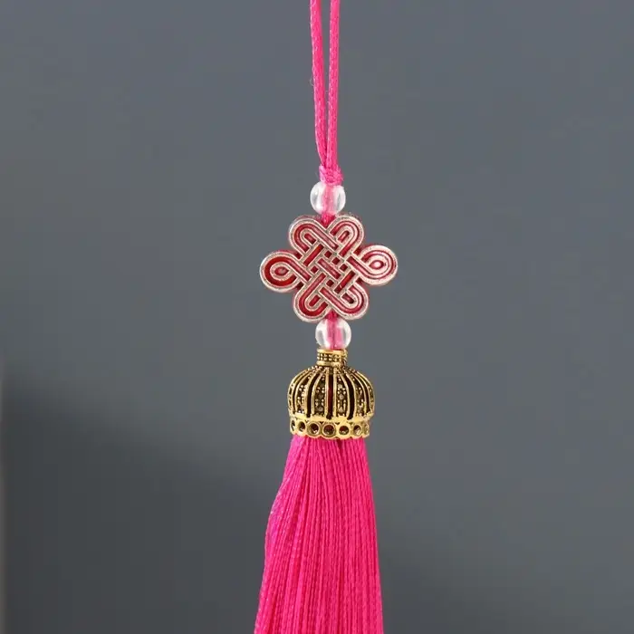 Подвеска текстиль, пластик "Узел счастья и бесконечности" фуксия 0,7х1х9,5 см