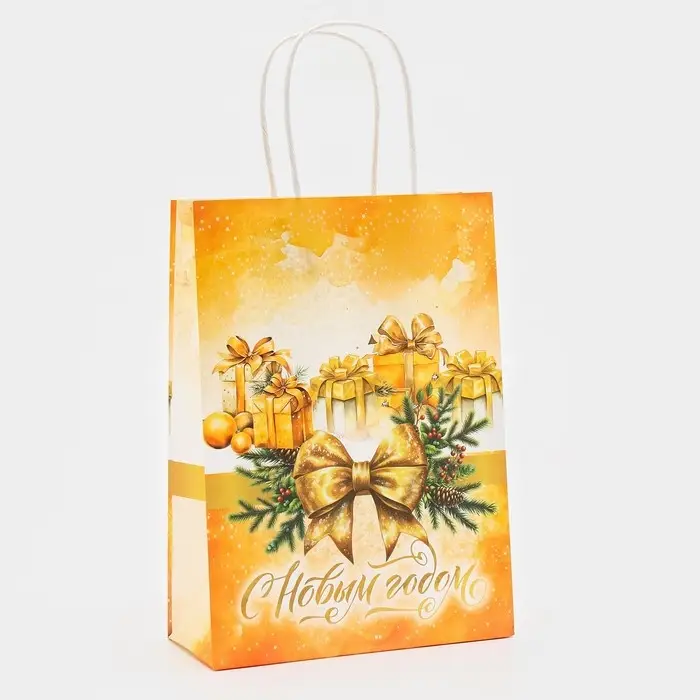Подарочный пакет крафт новогодний - это стильное и функциональное решение для упаковки и транспортировки подарков в преддверии зимних праздников.
