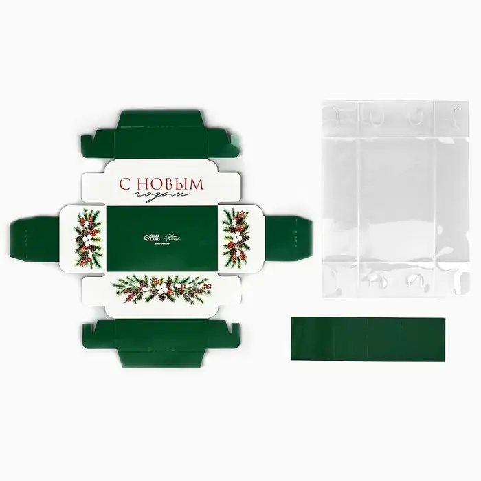 Коробка под 2 конфеты с ячейками «Новогодняя ботаника», 10 х 6 х 3 см