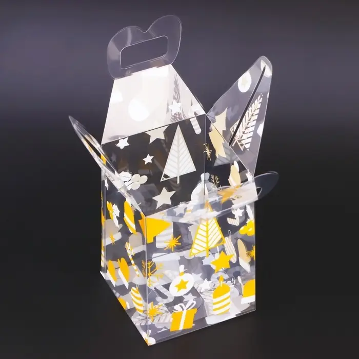 Складная новогодняя коробка из PVC — это стильная и прочная упаковка, созданная специально для праздничных подарков. Выполненная из высококачественного поливинилхлорида (PVC), она отличается высокой прочностью, устойчивостью к повреждениям и долговечностью, что делает её отличным выбором для хранения и транспортировки подарков в период новогодних праздников.