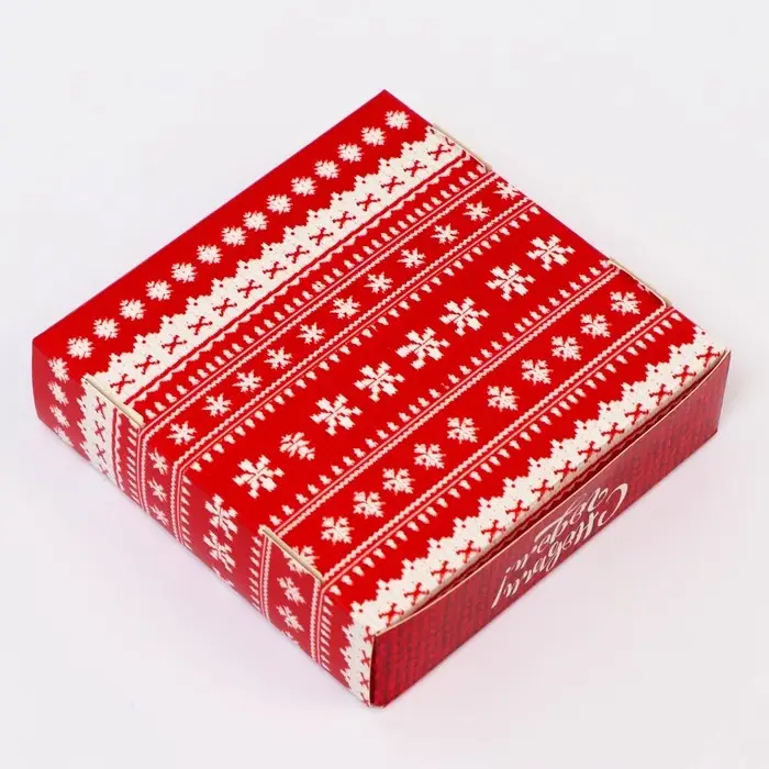 Сборная конструкция упрощает сборку и хранение коробок, а её элегантный внешний вид добавляет праздничного настроения и делает упаковку особенно запоминающейся. Эта коробка станет отличным выбором для упаковки подарков, угощений или сувениров, добавляя изысканности и радости в каждый момент праздника.