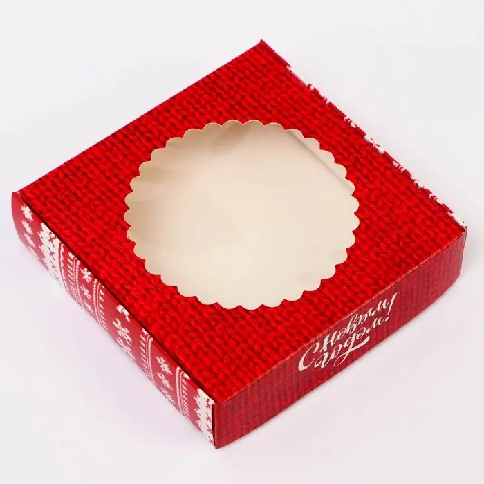 Подарочная коробка сборная с окном «Вязанка», 11.5×11.5×3 см