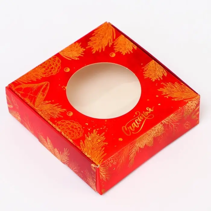 Подарочная сборная коробка с окном в новогоднем дизайне — это идеальная упаковка для кондитерских изделий, подарков и сувениров в праздничный сезон. Размеры и конструкция коробки позволяют удобно разместить различные виды сладостей, мелкие подарки или уникальные сувениры, обеспечивая их надежную защиту и привлекательное представление.