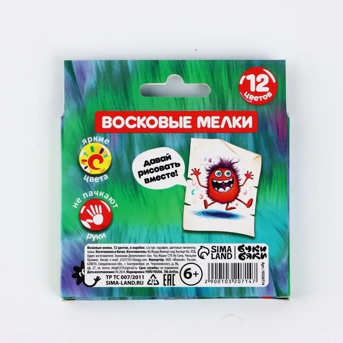 Мелки восковые 12 цветов в коробке «БукиБяки»