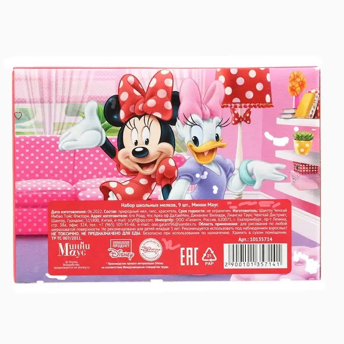Мелки цветные школьные 9 шт. «Минни Маус»