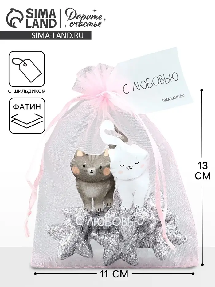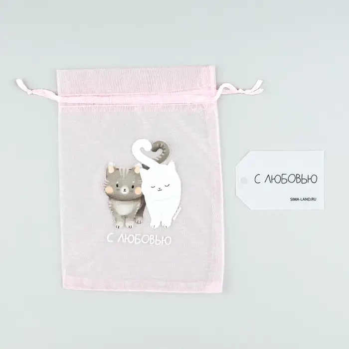 Мешочек подарочный из фатина с термонаклейкой «С любовью», 11 х 16 см +/- 1.5 см