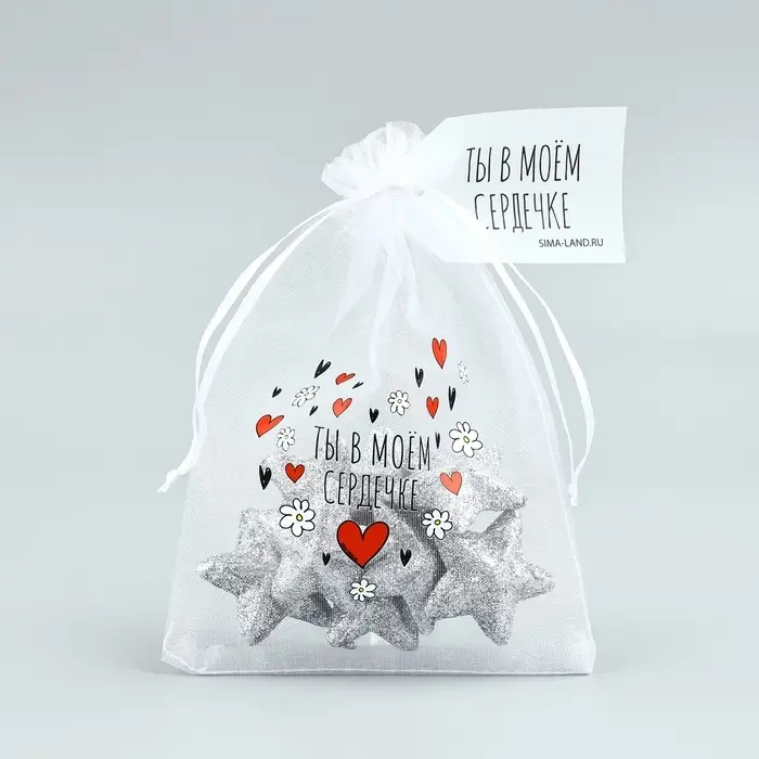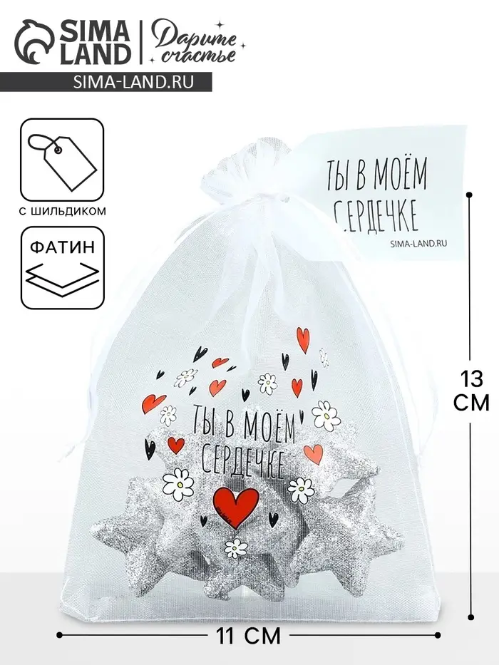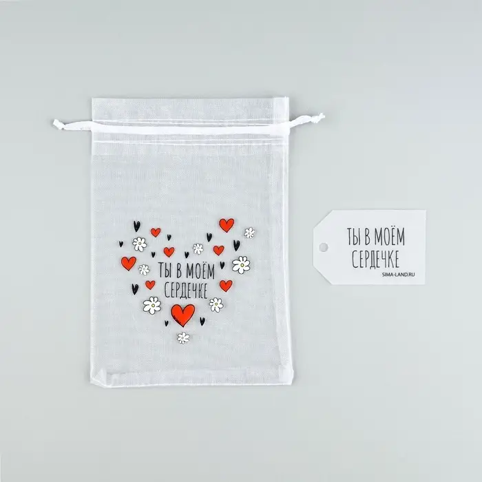 Мешочек подарочный из фатина с термонаклейкой «Ты в моем сердечке», 11 х 16 см +/- 1.5 см