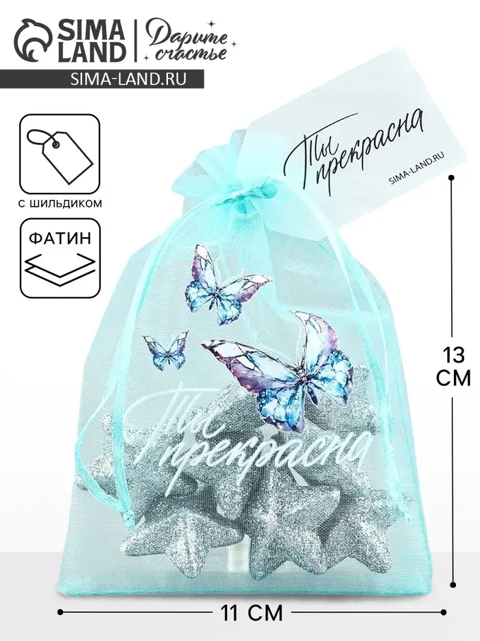 Мешочек подарочный из фатина с термонаклейкой «Ты прекрасна», 11 х 16 см +/- 1.5 см