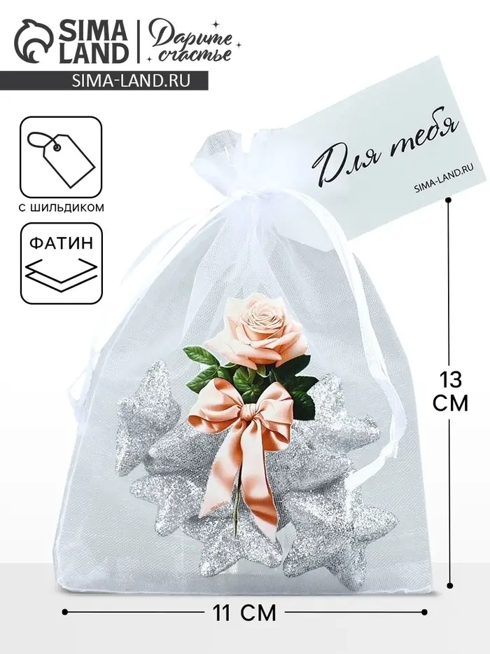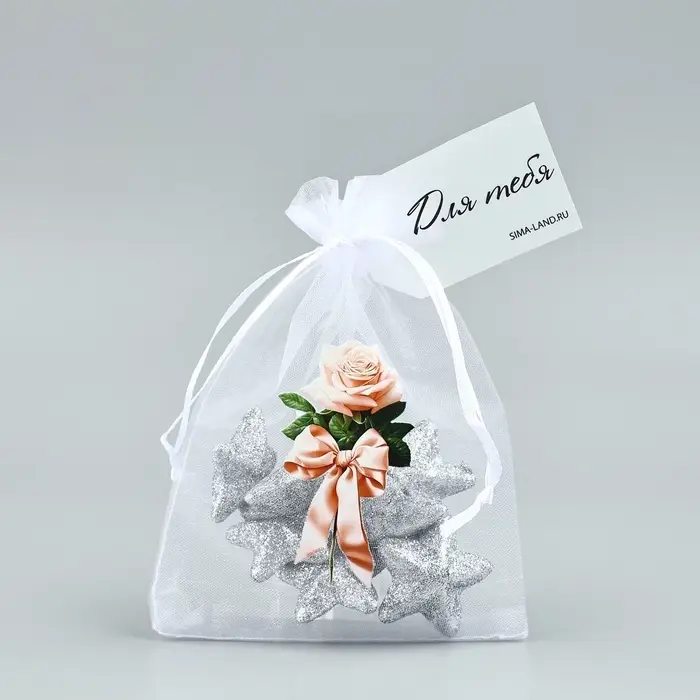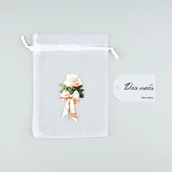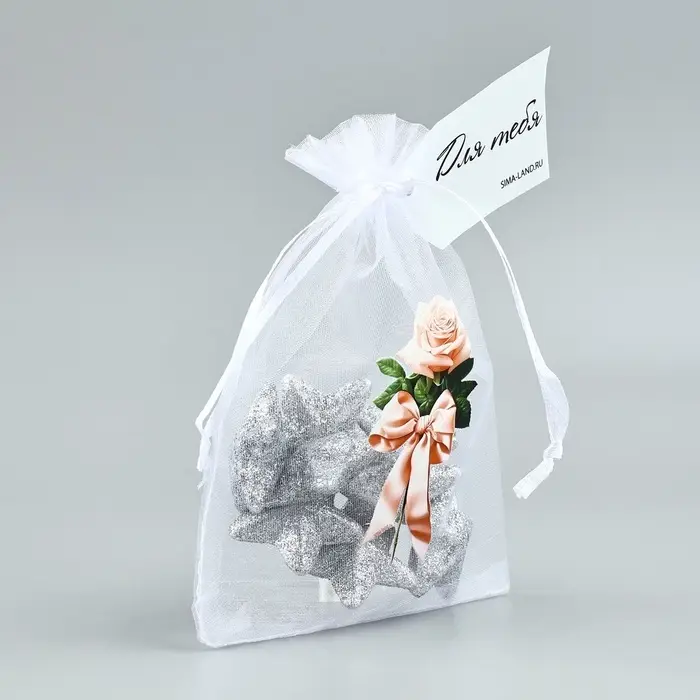 Мешочек подарочный из фатина с термонаклейкой «Роза», 11 х 16 см +/- 1.5 см