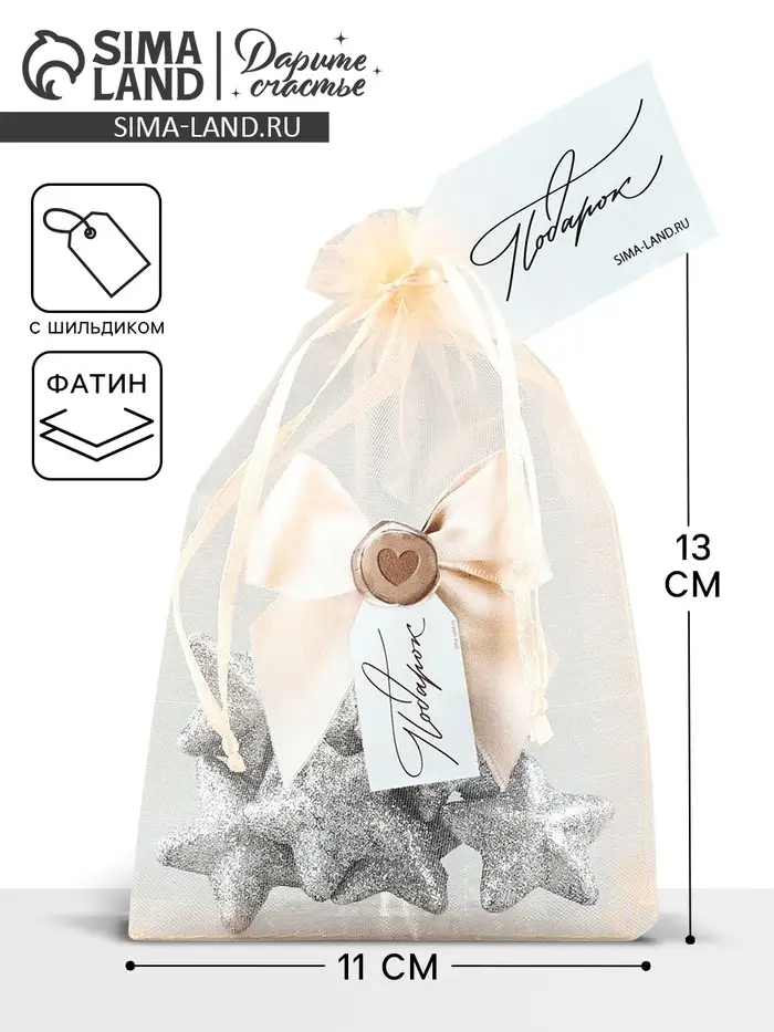 Мешочек подарочный из фатина с термонаклейкой «Бант», 11 х 16 см +/- 1.5 см