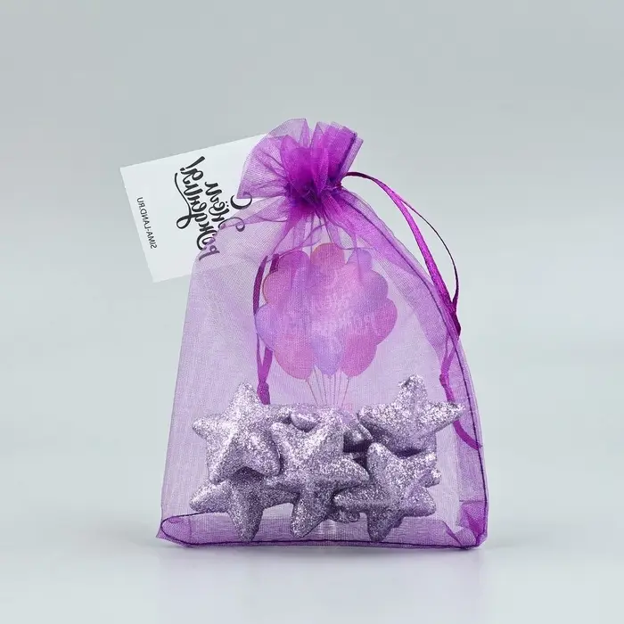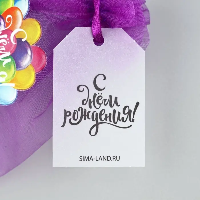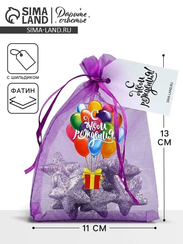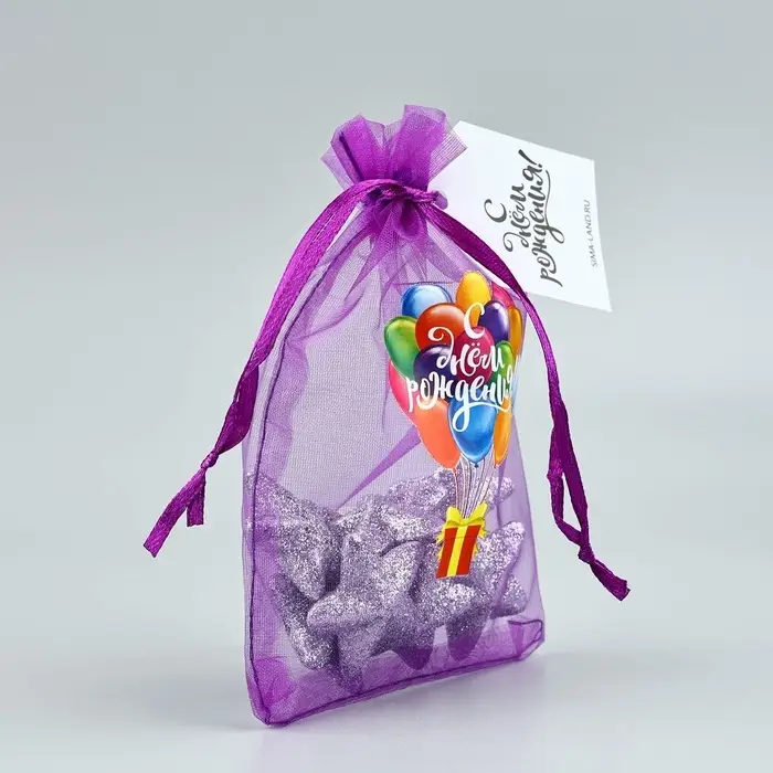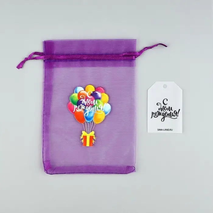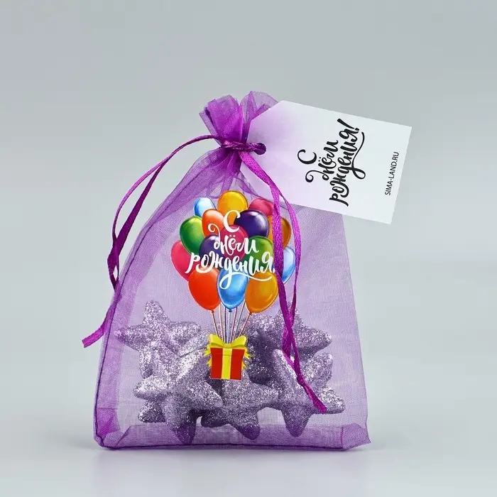Мешочек подарочный из фатина с термонаклейкой «С днем рождения», 11 х 16 см +/- 1.5 см