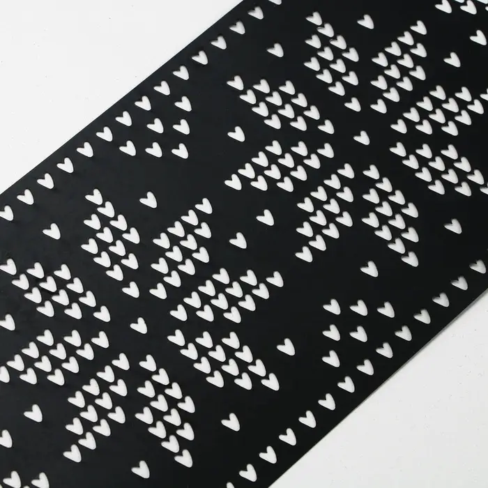 На боковых трафаретах сделаны специальные отверстия, чтобы закрепить трафарет на изделии и не придерживать рукой, украшать Ваше кондитерское либо любое другое изделие.