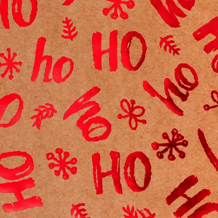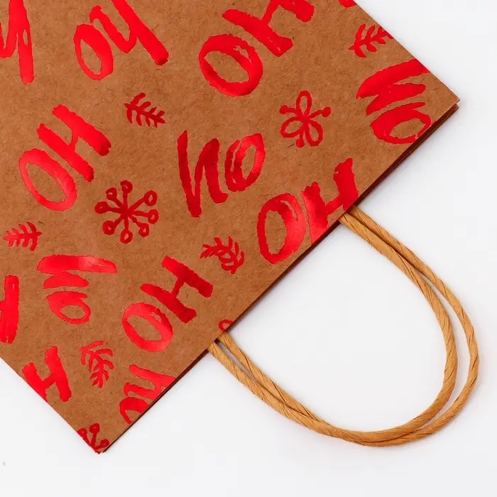 Пакет крафт с тиснением, круглая ручка, "Хо - Хо - Хо" 21×27×11 см, 120 г
