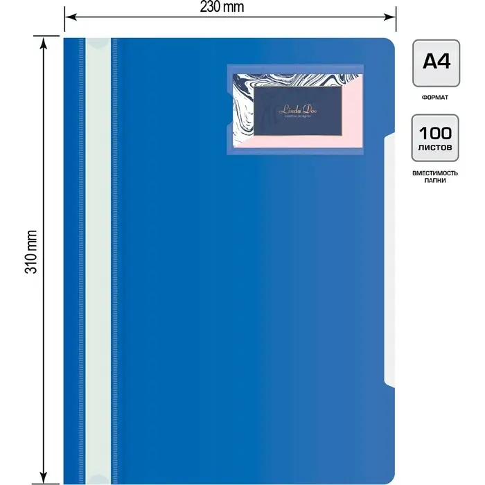 Папка-скоросшиватель Calligrata, А4, 180 мкм, карман для визитки, прозрачный верх, синяя