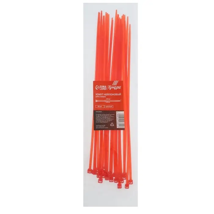 Хомут нейлоновый для стяжки, ТУНДРА, 3.6×250 мм, красный, 25 шт.