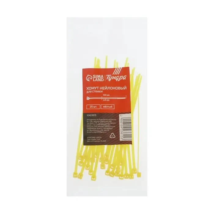 Хомут нейлоновый для стяжки, ТУНДРА, 2.5×100 мм, желтый, 25 шт.