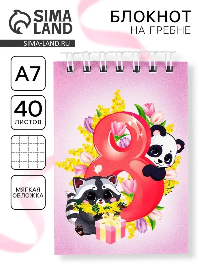 Блокноты в мягкой обложке А7, 40 л на гребне «Самая милая. 8 марта»