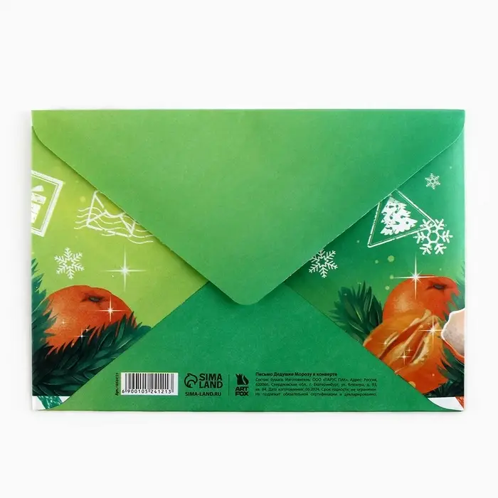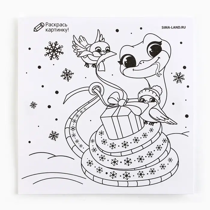 Письмо Деду Морозу, конверт А5, с раскраской «Новый год: Змейка с мандарином»