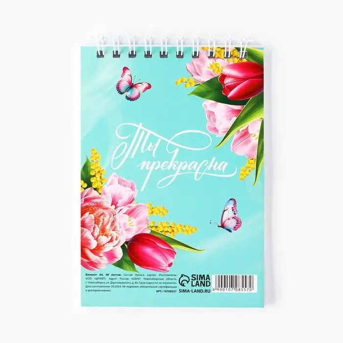 Блокнот «С 8 Марта», А6, 40 листов в клетку, обложка картон