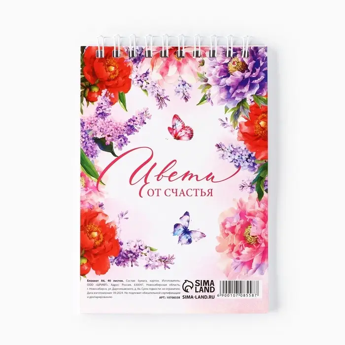 Блокнот, А6, 40 л. в клетку, обложка картон «8 марта»