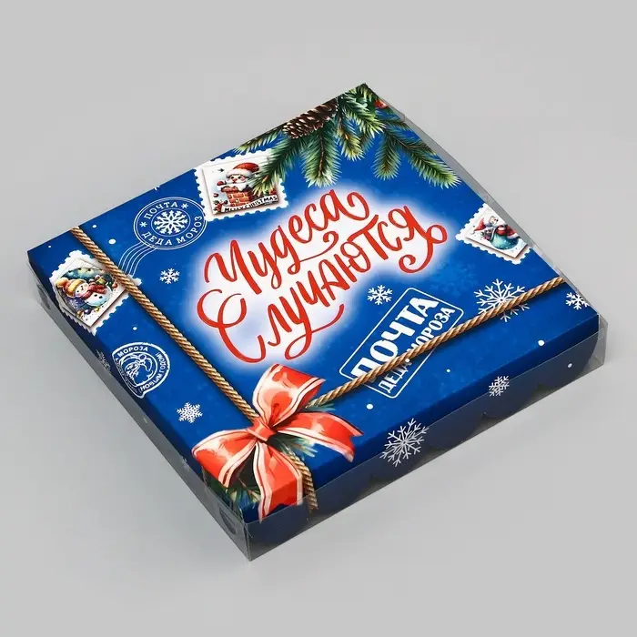 Коробка для печенья, «Новогодняя почта», 18×18×3 см