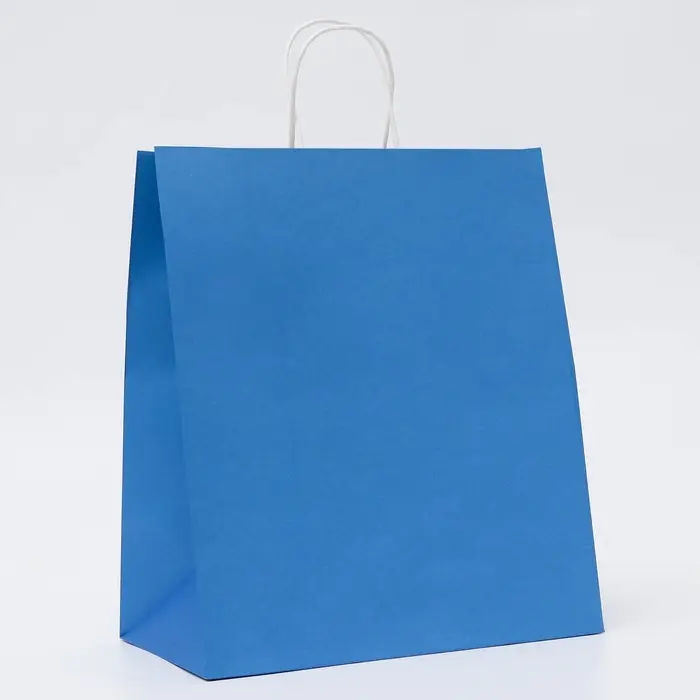 Пакет крафт синий, круглая ручка, 32×19.5×37 см, 120 г/м²
