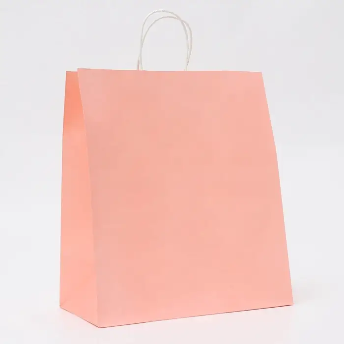 Пакет крафт нежно - розовый, круглая ручка, 32×19.5×37 см, 120 г
