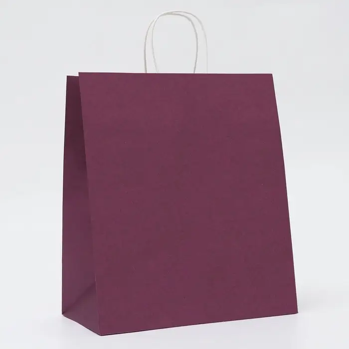 Пакет крафт сиреневый, круглая ручка, 32×19.5×37 см, 120 г