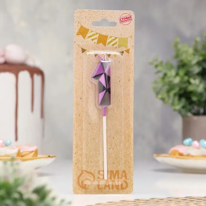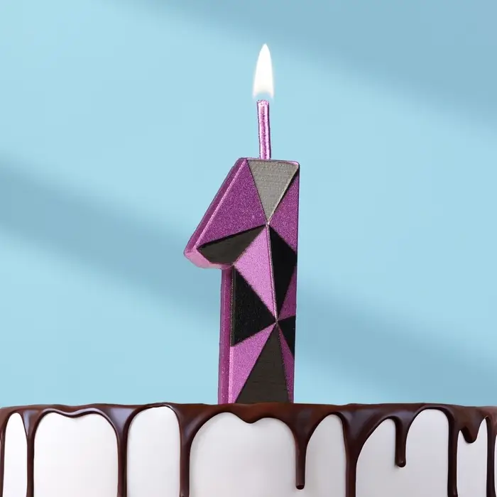 Свеча для торта «Алмаз», цифра 1, фиолетовый металлик