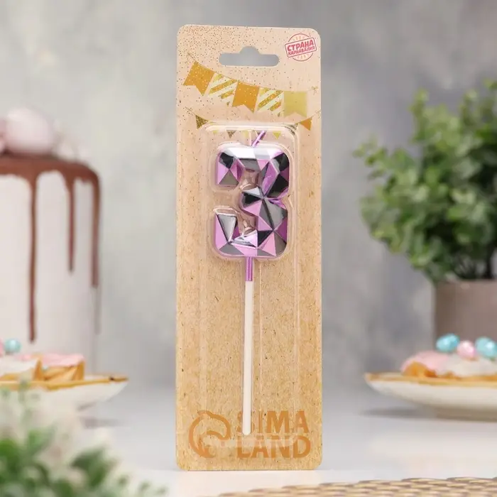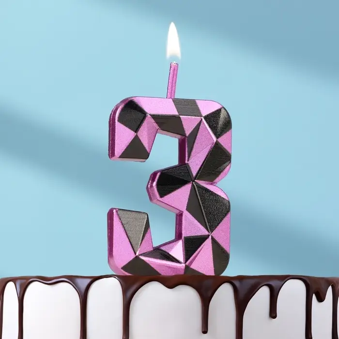 Свеча для торта «Алмаз», цифра 3, фиолетовый металлик