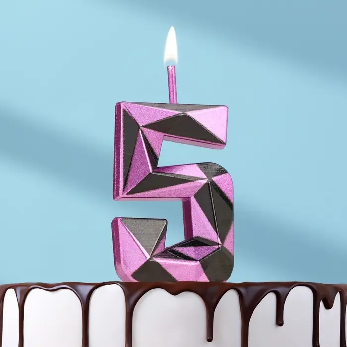 Свеча для торта «Алмаз», цифра 5, фиолетовый металлик