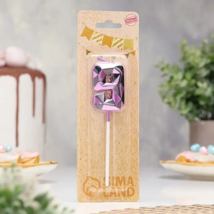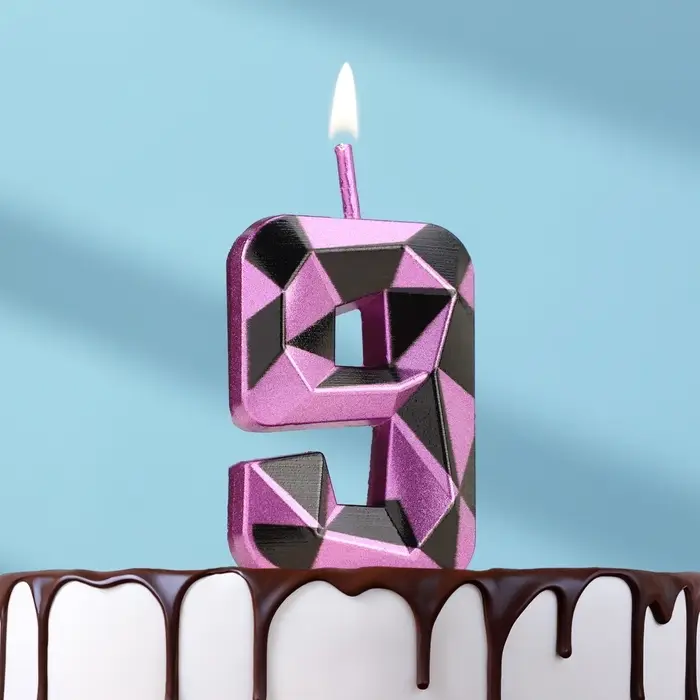 Свеча для торта «Алмаз», цифра 9, фиолетовый металлик