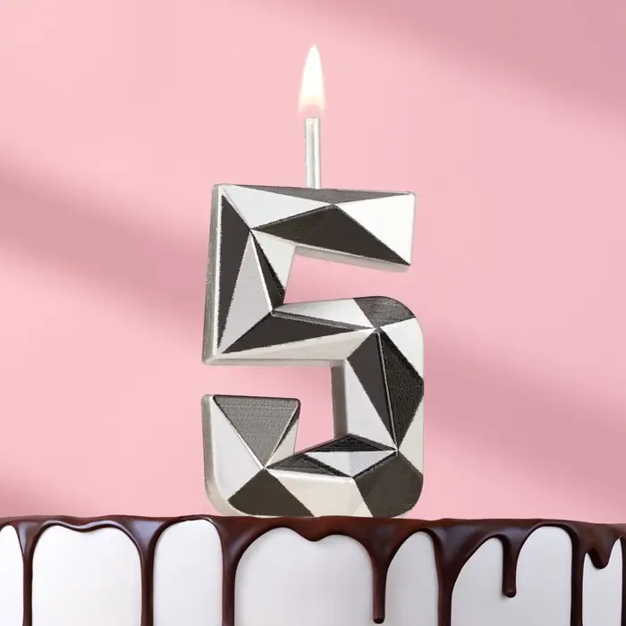 Свеча для торта «Алмаз», цифра 5, серебристый металлик