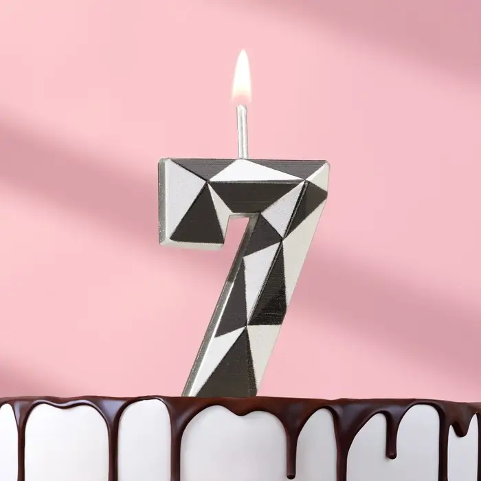 Свеча для торта «Алмаз», цифра 7, серебристый металлик