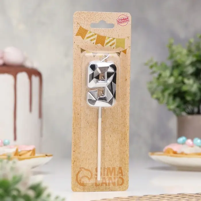 Свеча для торта «Алмаз», цифра 9, серебристый металлик