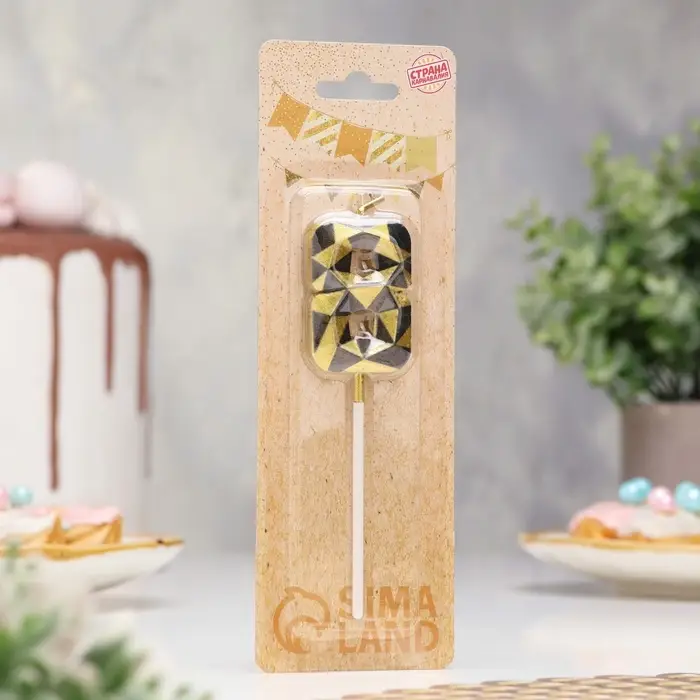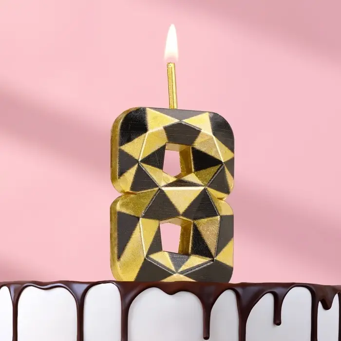 Свеча для торта «Алмаз», цифра 8, золотой с черным