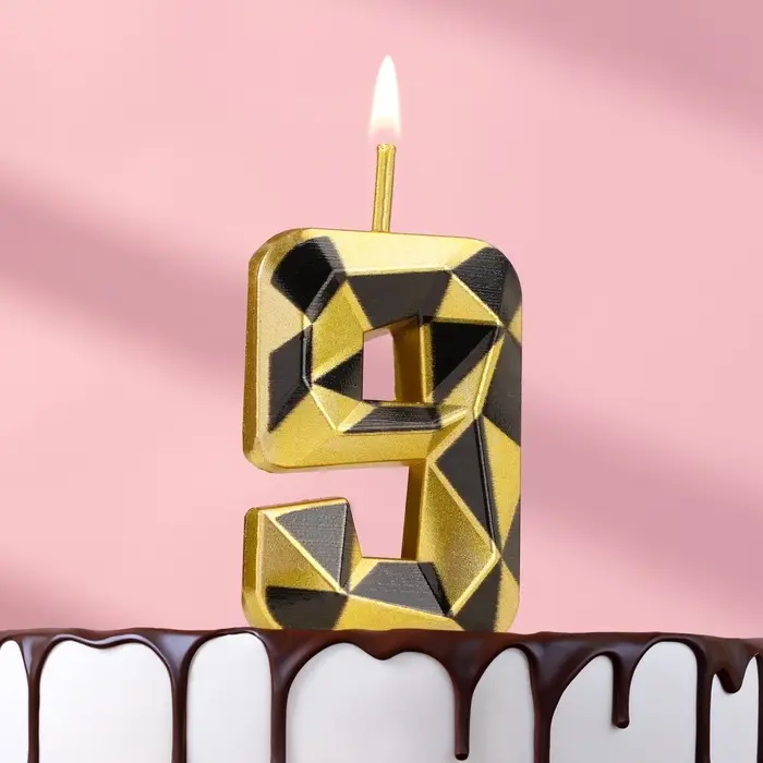 Свеча для торта «Алмаз», цифра 9, золотой с черным
