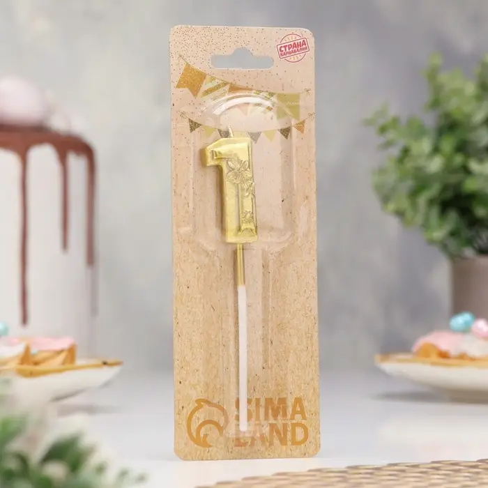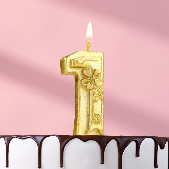 Свеча для торта «Цветочки», цифра 1, золотая