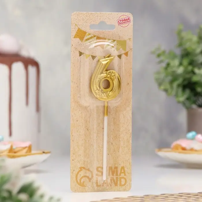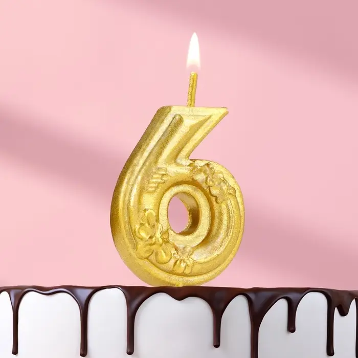 Свеча для торта «Цветочки», цифра 6, золотая