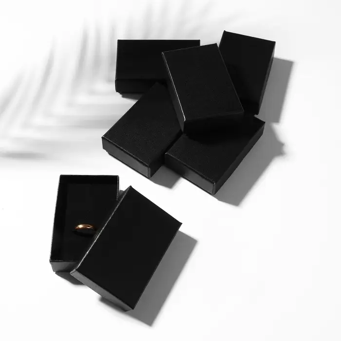 С нашими прекрасными коробочками любой подарок станет еще лучше и ярче. Футляр выполнен из прочного плотного картона. Оптимальный размер коробки 5*8см позволяет разместить разнообразные виды ювелирных изделий – от сережек до колье. Внутри каждой коробочки с крышкой есть чёрная бархатная подложка. С помощью специальных прорезей на подушечке можно аккуратно разместить и зафиксировать цепочки, гвоздики и перстни. А если убрать подложку, упаковка подойдет даже для часов с мягким плоским ремешком или на цепи.