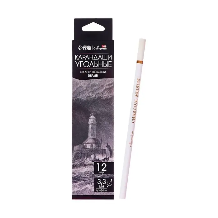 Уголь в карандаше, грифель d-3.3 мм, белый, средний