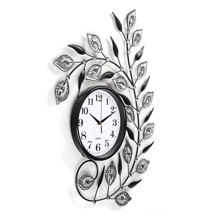 Часы настенные интерьерные большие "Веточка с лепестками", бесшумные, 70 х 50 см, d-22 см