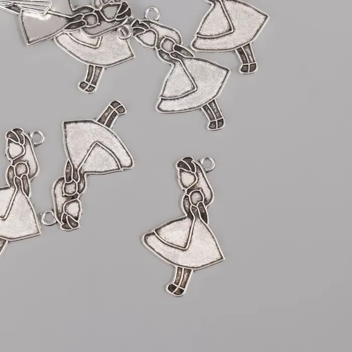 Металлический элемент, декоративная подвеска «Арт Узор. Алиса», серебро, 3.2×2 см