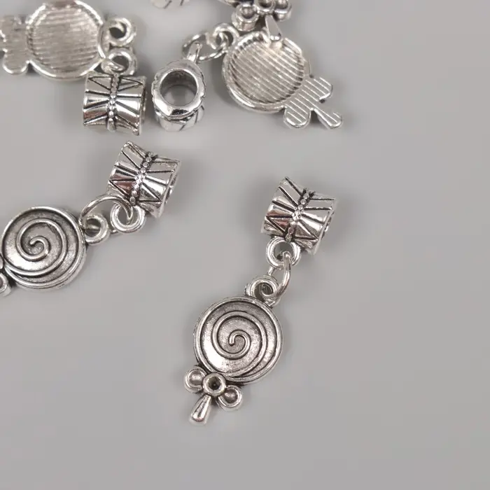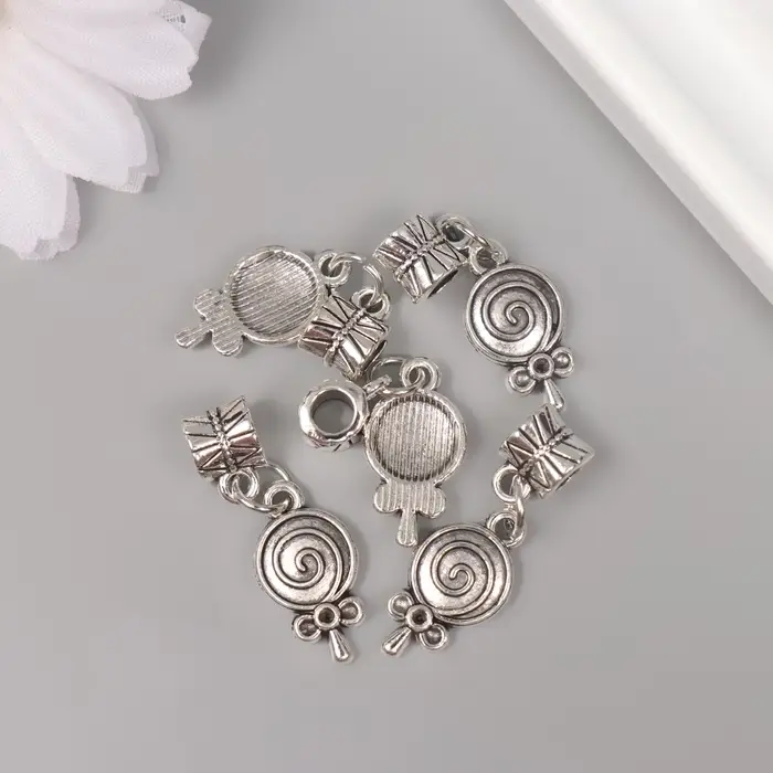 Бейл с подвеской металл для творчества "Конфета на палочке" серебро 2,7х1 см