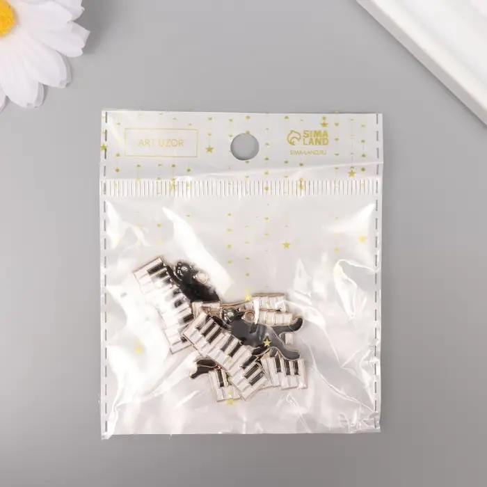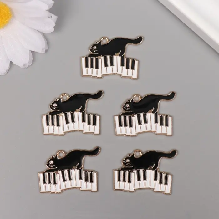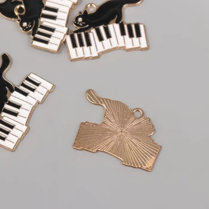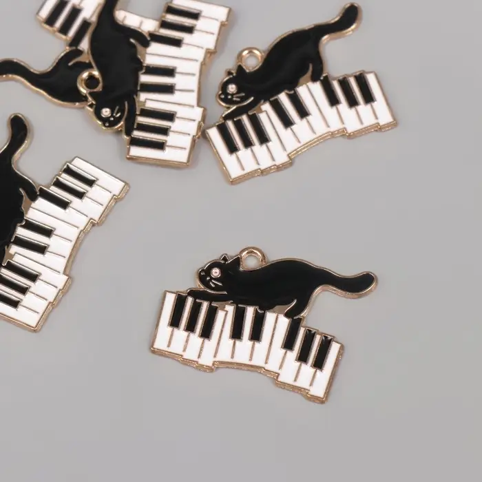 Декор для творчества металл, эмаль "Чёрный котик и пианино" 2,9х2 см