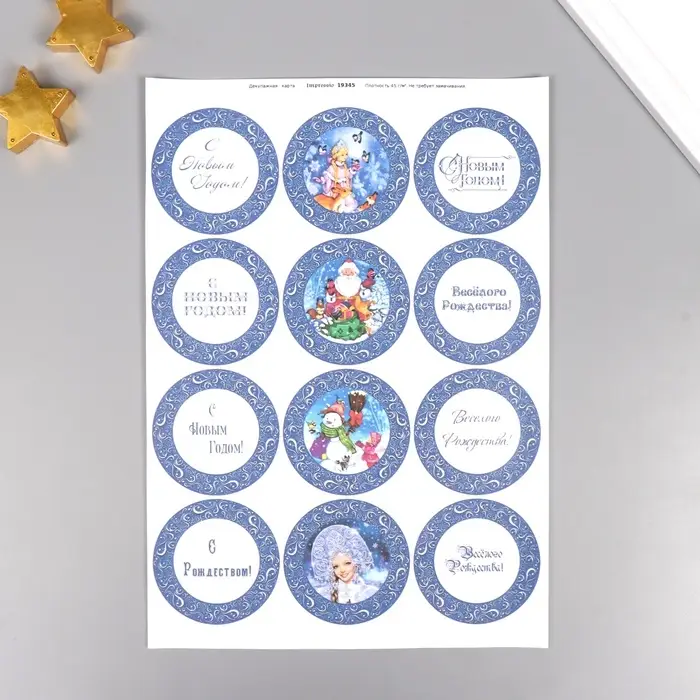 Декупажная карта «Медальоны новогодние», плотность 45 г/м², формат А4