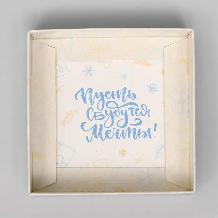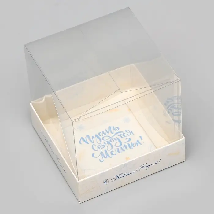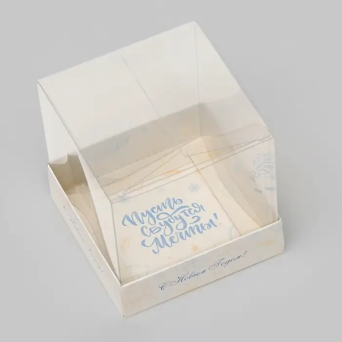 Новогодняя коробка для кондитерских изделий с ПВХ крышкой размером 10 х 10 х 10 см — идеальное решение для упаковки праздничных сладостей!