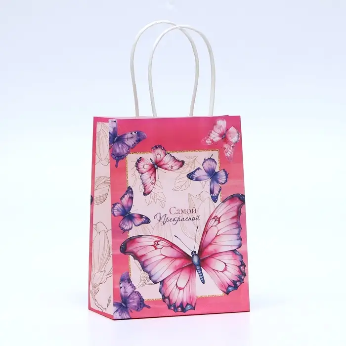 Пакет подарочный крафтовый «Самой прекрасной» 15×12×6 см, 120 г/м²