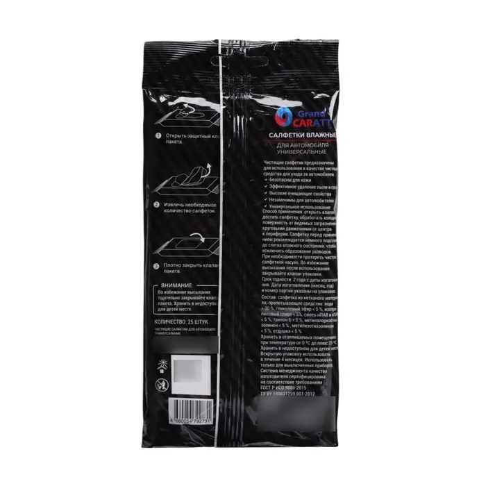 Влажные салфетки для стёкол автомобиля Grand Caratt, целлюлозное волокно, 25 шт