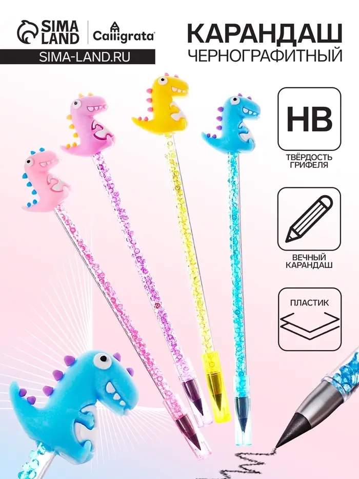 Карандаш чернографитный НВ, ВЕЧНЫЙ, Динозавры МИКС
